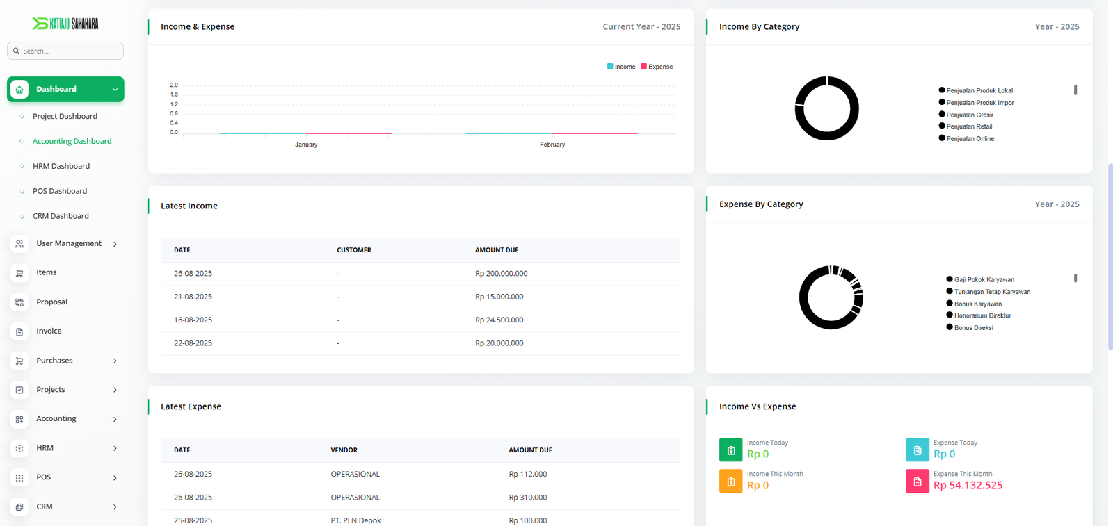 A budget is a financial plan for a specified period to keep in check with the working capital. This feature here helps to maintain the capital flow. You can set monthly, quarterly, half-yearly, or yearly budgets according to your business plans and needs. The main categories are “Income” and “Expense” where one can edit /update /delete the sub-categories as well.